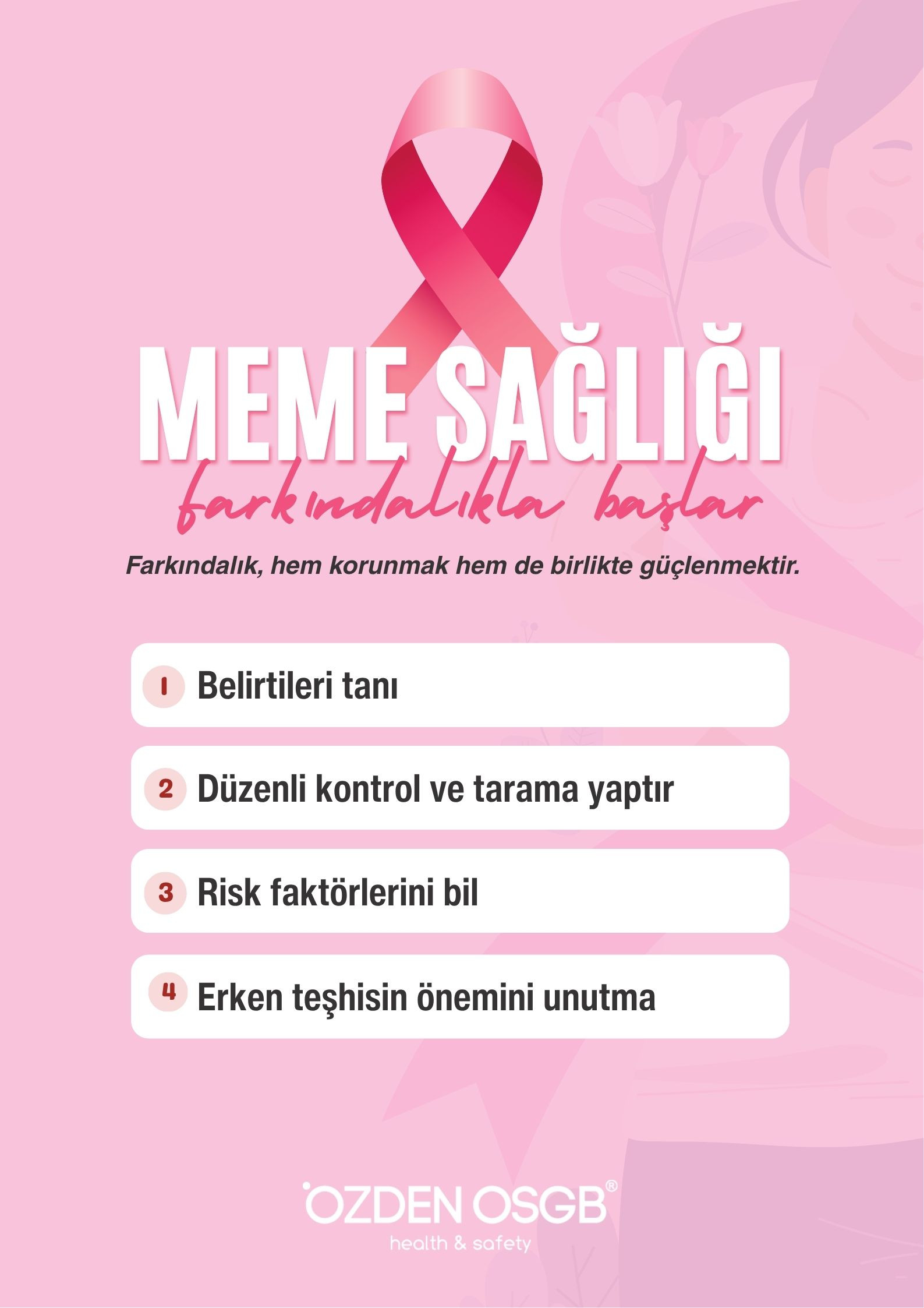 Özden OSGB olarak, iş sağlığı ve güvenliğinin yanı sıra toplum sağlığını da destekleyen kurumsal farkındalık çalışmalarını önemsiyoruz. Bu kapsamda hazırladığımız “Meme Sağlığı Farkındalıkla Başlar” afişini, tüm kurumların erişimine ücretsiz olarak sunuyoruz.
